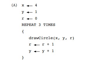 Echo UNTIL (x > 0) { 10 ← x - 1 } 4.4.5. Sample AP CSP Questions¶