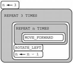 Repeat UNTIL ( GoalReached() ) { IF (CAN_MOVE(forrad)) { MOVE_FORWARD() } } In the Repeat UNTIL(condition) loop: