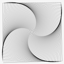 Logo's best known feature is its turtle, an actual picture of a turtle, that the user tin control by telling it how to move. As the turtle moves it leaves behind a trail, in other words it draws. Imagine the trail left behind by an beast equally it moves around in the sand on a embankment. Logo can be used to create very sophisticated algorithms and very sophisticated drawings, such every bit the pattern on the left.